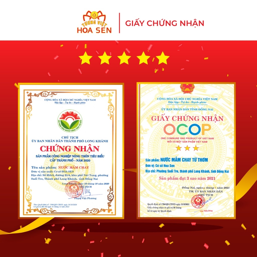 Nước mắm chay Từ Thơm chai 500ml combo 5 chai - Tương Việt Hoa Sen Có thể nói nước mắm là một trong những “quốc hồn, quốc túy” đặc trưng tạo nên văn hóa ẩm thực phong phú của người Việt Nam. Ngày nay, nước mắm không chỉ làm từ cá như chúng ta vẫn thường biết. Mà người Việt Nam còn sáng tạo ra nước mắm chay làm hoàn toàn từ thực vật. Hãy cùng Tương Việt Hoa Sen tìm hiểu ngay về loại Nước Mắm Chay Từ Thơm Chai 500ml này nhé! https://cf.shopee.vn/file/sg-11134201-7r99m-ln8fig61uynu51 Giới thiệu về Nước Mắm Chay Từ Thơm Chai 500ml, combo 5 chai: Nước Mắm Chay Từ Thơm Chai 500ml được làm ra với nguyên liệu chủ yếu là nước cốt trái thơm (trái dứa) và muối, bằng phương pháp sản xuất tiên tiến cho ra hương nước mắm thơm thoang thỏa vị trái cây, vị mặn thanh hơi chua, không bị chát và rất dịu lưỡi. Sản phẩm thích hợp dùng cho các món trộn chay, bởi có hương dứa và vị chua nhẹ tự nhiên hoặc dùng làm nước chấm bánh xèo bánh khọt đều rất hợp vị. Ưu điểm nổi bật của sản phẩm: - Với hương vị đậm đà, màu sắc hấp dẫn, bạn sẽ cảm thấy món ăn thêm thơm ngon, kích thích vị giác hơn khi sử dụng - Tuân thủ nghiêm ngặt các tiêu chuẩn vệ sinh an toàn thực phẩm, cho bạn hoàn toàn yên tâm khi sử dụng. - Sản xuất bằng phương pháp hợp vệ sinh, an toàn. Đóng gói bằng dây chuyền tự động Thành phần: - Nguyên liệu: Thơm 16%, đường cát, muối, màu (Caramen E150A), Chất điều vị (E621) - Không phẩm màu độc hại. Hướng dẫn sử dụng: - Là một loại nước chấm tuyệt hảo, ngon hơn khi pha chế thêm tỏi, ớt, chanh… - Có thể sử dụng chấm ăn liền như nước sốt, nước chấm, chế biến và chiên xào các món chay, ẩm thực chay kết hợp với nấm hoặc rau củ quả - Nước Mắm Chay Từ Thơm Chai 500ml phù hợp cho sử dụng kho, nấu, chiên xào, cũng như làm nước chấm cho các món bánh, bún, bánh ướt Hạn sử dụng và Bảo quản: - Loại sản phẩm: Nước mắm chay - Xuất xứ: Việt Nam - Hạn sử dụng: 12 tháng kể từ ngày sản xuất - Quy cách: Chai 500ml - 15 chai/thùng - Date giao hàng luôn mới nhất - Bảo quản nơi thoáng mát, sạch sẽ, tránh ánh sáng mặt trời chiếu trực tiếp. - Đóng kín sau khi dùng. - Không sử dụng khi sản phẩm hết hạn. https://cf.shopee.vn/file/sg-11134201-7r9at-ln8figl190w695 Lưu ý: Sản phẩm có thể sử dụng cho người ăn chay Tóm lại, việc ăn chay là để mang lại một cơ thể khỏe mạnh, giúp chúng ta tu tâm dưỡng tính, làm lành tránh dữ, trở nên gần gũi và thân thiện với thiên nhiên. Vậy nên, hãy bỏ túi ngay em Nước Mắm Chay Từ Thơm Chai 500ml của Tương Việt Hoa Sen giúp món ăn của bạn thêm phần đậm đà và trọn vị ngon hơn nhé. *Hashtag: #nuocmam #mam #nuocmambebau #nuocmamchay #nuocmamdenhi #nuoccham #nuocmamngon #nuocmamcathai #nuocmamthuanphat #cachlamnuocmamchay #chainuocmam #nuocmamcacuong #mamchay #nuocmamtruyenthong #nuocmamhuongviet #cachnaunuocmamchay #shopnuocmam #nuocmamchaylamtugi #nuocmamlangchaixua #nuocmambebau #nuocmamchay