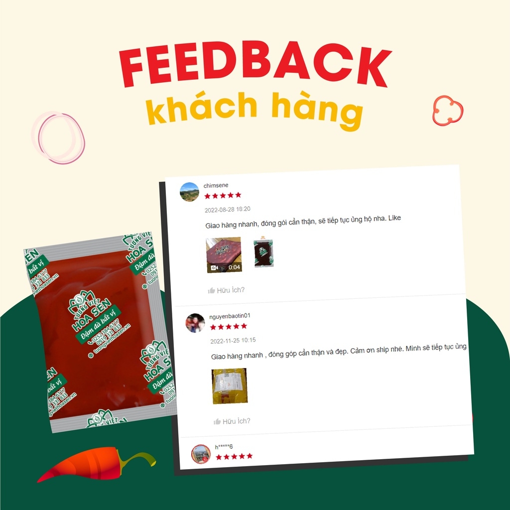 Tương cà gói nhỏ 15g TV - Túi 100 gói - Tương Việt Hoa Sen - Đậm đà bắt vị Tương cà là loại sốt chấm không thể thiếu trong nhiều món ăn, nhất là các món rán nướng nhiều dầu mỡ. Trong số các loại sốt chấm tương cà cũng là loại có hàm lượng tinh bột thấp, với nhiều thành phần dinh dưỡng như Lycopene - chất chống oxy hóa có nhiều lợi ích đối với sức khỏe và sắc đẹp. Vì thế, tương cà ngày càng được nhiều người ưa chuộng sử dụng trong bữa ăn hằng ngày. Hãy cùng Tương Việt Hoa Sen tìm hiểu ngay về loại Tương cà gói nhỏ 15g TV này nhé! Giới thiệu về Tương cà gói nhỏ 15g TV: Tương cà gói nhỏ 15g TV là sản phẩm có nguồn nguyên liệu an toàn cho sức khỏe, được chọn lọc kỹ lưỡng mang đến hương vị chua ngọt đặc trưng, giúp tăng thêm hương vị cho các món ăn trong bữa cơm của gia đình bạn. Tương cà dùng để chấm, nêm nếm, tẩm ướt cho các món ăn. Tương cà gói nhỏ 15g TV đặc biệt thích hợp với các cửa hàng thức ăn nhanh, giúp các quán ăn có thể tính toán được số lượng tương cà phù hợp với nhu cầu sử dụng, giảm thiểu lãng phí và tiết kiệm chi phí. Đó là lí do sản phẩm này còn hay được gọi với cái tên là Tương cà hàng quán. Ưu điểm nổi bật của sản phẩm Tương cà gói nhỏ 15g: - Tương cà gói nhỏ 15g TV làm từ những nguyên liệu được chọn lọc từ những quả cà tươi đỏ mọng, những củ hành tím thơm lừng hòa quyện với các nguyên liệu tạo nên món sốt và gia vị đặc trưng thơm ngon mang đến sự an toàn cho người sử dụng. - Với hương vị đậm đà, màu sắc hấp dẫn, bạn sẽ cảm thấy món ăn thêm thơm ngon, kích thích vị giác hơn khi sử dụng - Tuân thủ nghiêm ngặt các tiêu chuẩn vệ sinh an toàn thực phẩm, cho bạn hoàn toàn yên tâm khi sử dụng. - Sản xuất bằng phương pháp hợp vệ sinh, an toàn. Đóng gói bằng dây chuyền tự động https://cf.shopee.vn/file/sg-11134201-7rblq-lmfs85yjdzv42a Thành phần Tương cà gói nhỏ: - Nguyên liệu an toàn : Cà chua, hành tím, đường, muối ăn, nước, bột bắp - Không phẩm màu độc hại. Hướng dẫn sử dụng Tương cà Hoa Sen: - Dùng Tương cà gói chấm trực tiếp hoặc tẩm ướp thức ăn, giúp tăng thêm hương vị cho món ăn, kích thích bạn ăn ngon miệng hơn. - Tương cà thích hợp dùng để nấu hoặc ăn cùng mì spaghetti, mì xào, nui xào, pizza, hamburger, gà rán, xúc xích nướng… giúp hương vị món ăn thêm thơm ngon, đậm đà. Hạn sử dụng và Bảo quản: - Loại tương: Tương cà - Xuất xứ: Việt Nam - Hạn sử dụng: 12 tháng kể từ ngày sản xuất - Quy cách: Gói 15g - 100gói /túi - Date giao hàng luôn mới nhất - Bảo quản nơi thoáng mát, sạch sẽ, tránh ánh sáng mặt trời chiếu trực tiếp. - Đóng kín sau khi dùng. Lưu ý: Sản phẩm có thể sử dụng cho người ăn chay Không chỉ là loại gia vị thông thường mà tương cà còn được xem là linh hồn của nhiều món ăn. Vậy nên, hãy bỏ túi ngay em Tương cà màng gói nhỏ 15g của Tương Việt Hoa Sen giúp món ăn của bạn thêm phần đậm đà và trọn vị ngon hơn nhé. *Hashtag: #tuongca #tuongcagoi #tuongcagoinho #tuongcagoinho15g #tuongcagoi15g #tuongcahangquan #tuongcagiasi #tuongcangon #tuongcacholimex #tuongcacholimexgoi #tuongcachinsu #tuongcahoasen #tuongcatuongviethoasen #tuongviethoasen
