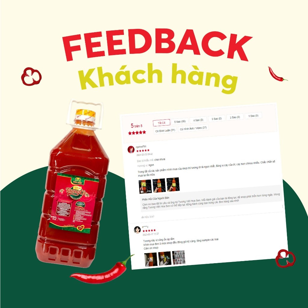 Tương Cà Pet 4.8kg - Tương Việt Hoa Sen Tương cà là loại sốt chấm không thể thiếu trong nhiều món ăn, nhất là các món rán nướng nhiều dầu mỡ. Trong số các loại sốt chấm tương cà cũng là loại có hàm lượng tinh bột thấp, với nhiều thành phần dinh dưỡng như Lycopene - chất chống oxy hóa có nhiều lợi ích đối với sức khỏe và sắc đẹp. Vì thế, tương cà ngày càng được nhiều người ưa chuộng sử dụng trong bữa ăn hằng ngày. Hãy cùng Tương Việt Hoa Sen tìm hiểu ngay về loại Tương Cà Pet 4.8kg này nhé! https://cf.shopee.vn/file/sg-11134201-7rbkh-lmede8oysfxl77 Giới thiệu về Tương Cà Pet 4.8kg: Tương Cà Pet 4.8kg là sản phẩm có nguồn nguyên liệu an toàn cho sức khỏe, được chọn lọc kỹ lưỡng mang đến hương vị chua ngọt đặc trưng, giúp tăng thêm hương vị cho các món ăn trong bữa cơm của gia đình bạn. Tương cà dùng để chấm, nêm nếm, tẩm ướt cho các món ăn. Tương cà Pet 4.8kg đặc biệt thích hợp với các quán ăn, giúp các quán ăn có thể tính toán được số lượng tương cà phù hợp với nhu cầu sử dụng, giảm thiểu lãng phí và tiết kiệm chi phí. Đó là lí do sản phẩm này còn hay được gọi với cái tên là Tương cà hàng quán. Ưu điểm nổi bật của sản phẩm Tương cà bình lớn: - Tương Cà Pet 4.8kg chọn lọc từ những quả cà đỏ mọng, những củ hành tím thơm lừng hòa quyện với các nguyên liệu tạo nên món sốt và gia vị đặc trưng thơm ngon mang đến sự an toàn cho người sử dụng. - Với hương vị đậm đà, màu sắc hấp dẫn, bạn sẽ cảm thấy món ăn thêm thơm ngon, kích thích vị giác hơn khi sử dụng - Tuân thủ nghiêm ngặt các tiêu chuẩn vệ sinh an toàn thực phẩm, cho bạn hoàn toàn yên tâm khi sử dụng. - Sản xuất bằng phương pháp hợp vệ sinh, an toàn. Đóng gói bằng dây chuyền tự động Thành phần Tương cà can: - Nguyên liệu an toàn: Cà chua, hành tím, đường, muối ăn, nước, bột bắp - Không phẩm màu độc hại. Hướng dẫn sử dụng Tương cà Hoa Sen: - Dùng chấm trực tiếp hoặc tẩm ướp thức ăn, giúp tăng thêm hương vị cho món ăn, kích thích bạn ăn ngon miệng hơn. - Tương cà thích hợp dùng để nấu hoặc ăn cùng mì spaghetti, mì xào, nui xào, pizza, hamburger, gà rán, xúc xích nướng… giúp hương vị món ăn thêm thơm ngon, đậm đà. https://cf.shopee.vn/file/vn-11134208-7r98o-lv17u9oqbjx6cc Hạn sử dụng và Bảo quản: - Loại tương: Tương cà - Xuất xứ: Việt Nam - Hạn sử dụng: 12 tháng kể từ ngày sản xuất - Quy cách: Bình 4.8kg - 4 bình/thùng - Date giao hàng luôn mới nhất - Bảo quản nơi thoáng mát, sạch sẽ, tránh ánh sáng mặt trời chiếu trực tiếp. - Đóng kín sau khi dùng. Lưu ý: Sản phẩm Tương cà Tương Việt Hoa Sencó thể sử dụng cho người ăn chay Không chỉ là loại gia vị thông thường mà tương cà còn được xem là linh hồn của nhiều món ăn. Vậy nên, hãy bỏ túi ngay em Tương Cà Pet 4.8kg của Tương Việt Hoa Sen giúp món ăn của bạn thêm phần đậm đà và trọn vị ngon hơn nhé. *Hashtag: #tuongca #tuongcachua #tuongcacan #tuongcabinhlon #cantuongca #binhtuongca #tuongca5l #tuongcahangquan #tuongcagiasi #tuongcasi #tuongcacholimex #tuongcacholimexgoi #tuongcanamduong #tuongcahoasen #tuongcatuongviethoasen #tuongviethoasen
