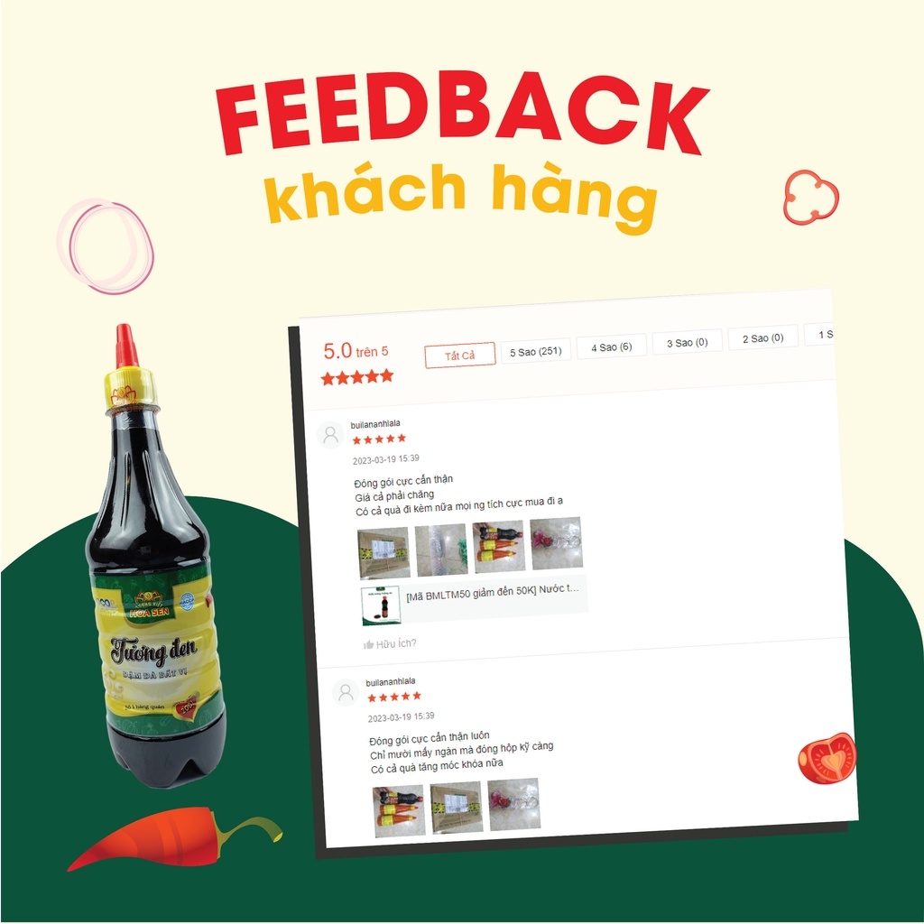 Tương Đen Chai 700g - Tương Việt Hoa Sen Trong ẩm thực của người Trung Quốc, tương đen thường được dùng cho các món như nem rán, xá xíu hay vịt quay Bắc Kinh. Còn trong ẩm thực Việt Nam, tương đen là một gia vị không thể thiếu cho món phở, gỏi cuốn hay cá viên chiên. Hãy cùng Tương Việt Hoa Sen tìm hiểu ngay về loại Tương Đen Chai 700g này nhé! https://cf.shopee.vn/file/sg-11134201-7rbl6-lmfs9zabsg0z3d Giới thiệu về Tương Đen Chai 700g: Được làm từ nguyên liệu đậu tương an toàn cho sức khỏe, thơm ngon. Tương Đen Chai 700g của thương hiệu Tương Việt Hoa Sen có vị vừa ăn, mùi thơm hấp dẫn, góp phần tăng thêm hương vị cho các món chính như phở, bún bò… Loại tương đen còn làm gia vị khi ướp, tẩm cho các chiên, nướng gia tăng hương vị. Ưu điểm nổi bật của sản phẩm: - Vị tương ngọt, đậm đà - Màu nâu đen truyền thống - Làm từ đậu nành lên men tự nhiên. - Tuân thủ nghiêm ngặt các tiêu chuẩn vệ sinh an toàn thực phẩm, cho bạn hoàn toàn yên tâm khi sử dụng. - Sản xuất bằng phương pháp hợp vệ sinh, an toàn. Đóng gói bằng dây chuyền tự động Thành phần: - Nguyên liệu an toàn: Đậu nành, đường, muối, gia vị … - Không phẩm màu độc hại. Hướng dẫn sử dụng Tương Đen Chai 700g: - Rất ngon khi dùng trong món phở giúp tăng hương vị món ăn. - Sử dụng chấm trực tiếp với gỏi cuốn, cá viên, thịt nướng hoặc làm gia vị tẩm ướp để món ăn đậm đà, ngon miệng. https://cf.shopee.vn/file/sg-11134201-7rbku-lmfs9zqz42m1f0 Hạn sử dụng và Bảo quản: - Loại tương: Tương đen - Xuất xứ: Việt Nam - Hạn sử dụng: 12 tháng kể từ ngày sản xuất - Quy cách: Chai nhựa 700g - 12chai/thùng - Date giao hàng luôn mới nhất - Bảo quản nơi thoáng mát, sạch sẽ, tránh ánh sáng mặt trời chiếu trực tiếp. - Đóng kín sau khi dùng. Lưu ý: Sản phẩm có thể sử dụng cho người ăn chay *Hashtag: #tuongden #tuongden #sottuongden #tuongdenanpho #nuoctuongden #tuongdenlamtugi #tuongden #sotmituongden #misottuongden #lamsottuongden #sottuongdenlamtugi #tuongdenpho #chaituongden #tuongdendaubep #tuongdenchambovien #nuocsottuongden #sottuongden #tuongdenngot #tuongdenngon #tuongviethoasen
